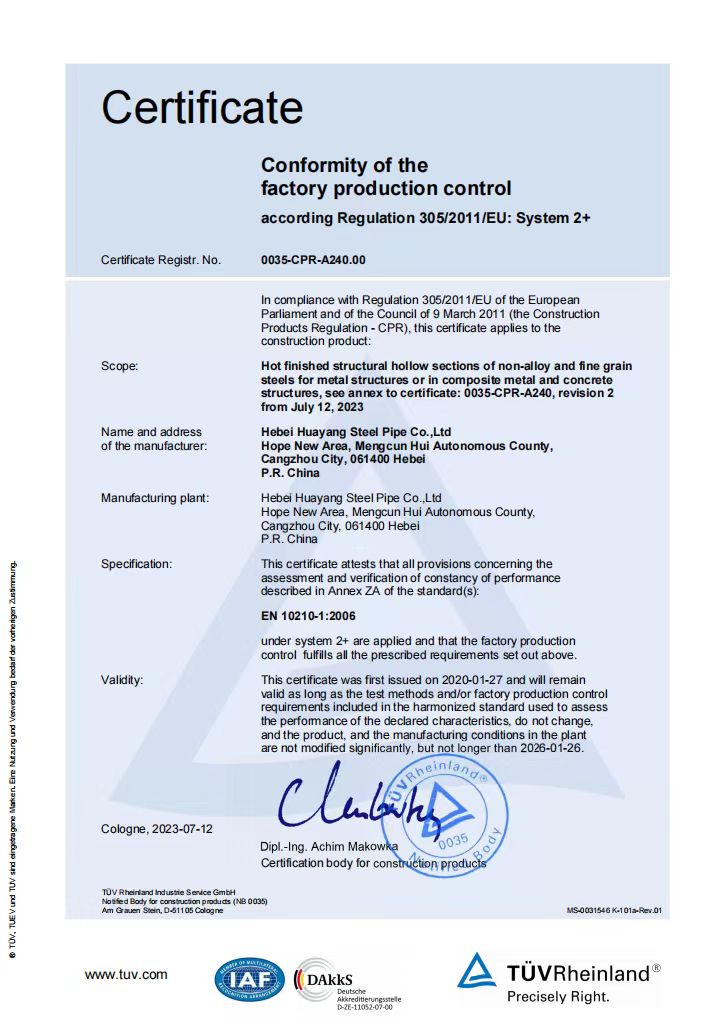 河北華洋鋼管有限公司公司創建于2005年,注冊資金5億元,公司占地面積1000余畝,固定資產12億元,年銷售收入近100億元,現有員工600余人?!叭A洋牌"高頻直焊鋼管被評為“河北省名牌產品”,年生產能力可達260萬噸,2024年河北華洋鋼管有限公司榮獲河北省百強民營企業(69位),河北省百強制造業(57位)榮譽稱號。